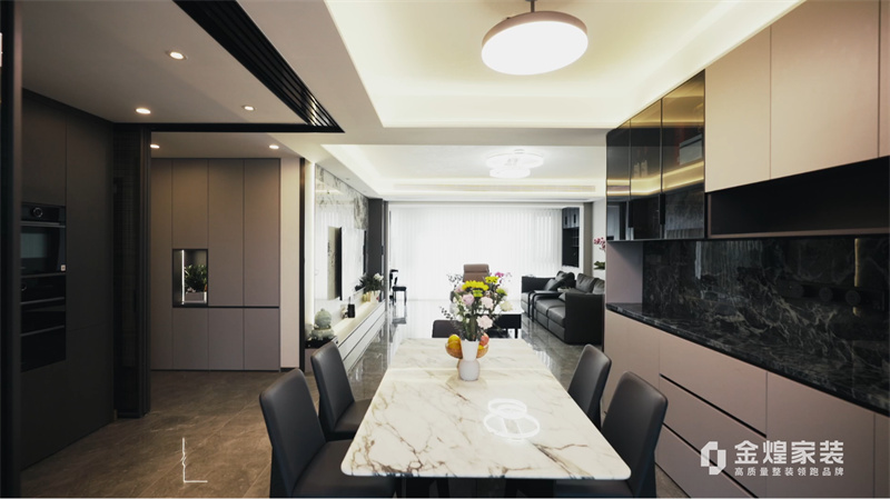 电视背景墙的大理石纹理、简洁的家具线条以及精心布置的灯光设计,都体现了现代轻奢风格的特点。同时,通过添加一些鲜花和装饰品,增加了空间的温馨感和生活气息。