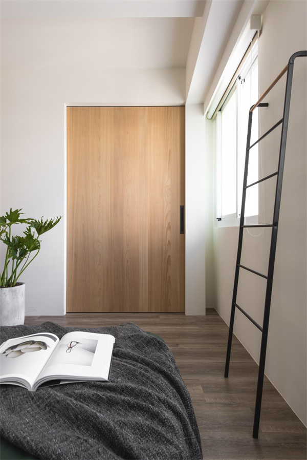 主卧以中性色调为主,淡灰色墙面+原木色地板组合,柔软舒适的床品,搭配精致的软装,打造温馨惬意的睡眠空间。精心挑选的绿植,为空间增添一份清新和舒适感。