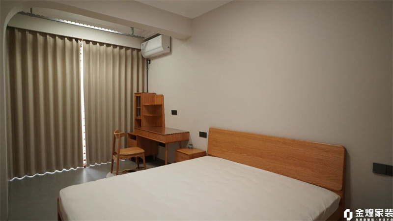 次卧更注重实用与自然质感。采用整套原木色家具,搭配柔和的灯光设计,让整个空间显得舒适宜人。书桌的设计简洁大方,同时配有多功能储物柜,既节省空间,又增加了实用性。